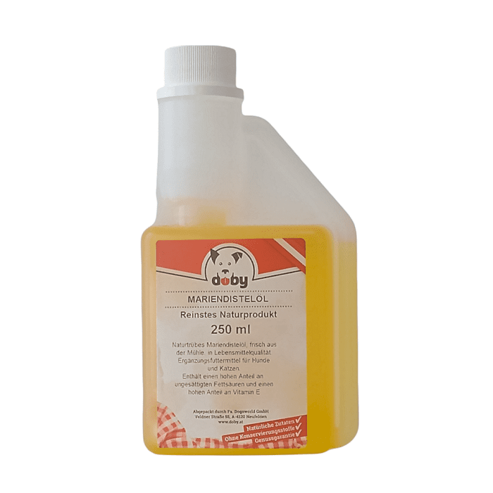 Mariendistelöl verfügt über einen hohen Anteil an Linolsäure und wird gerne unterstützend zugefüttert.