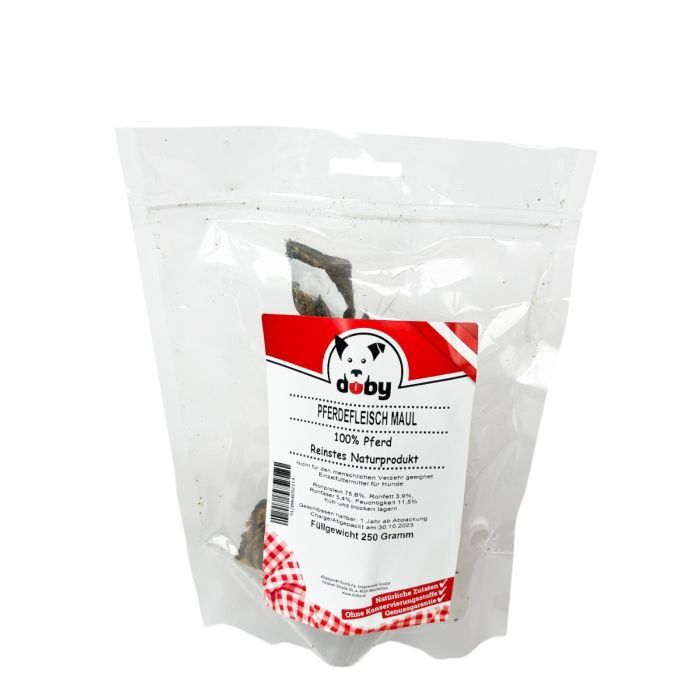 Feiner Hunde-Kausnack aus getrockentem Pferdemaul 100% Naturprodukt “der Kaugummi vom Pferd”.
